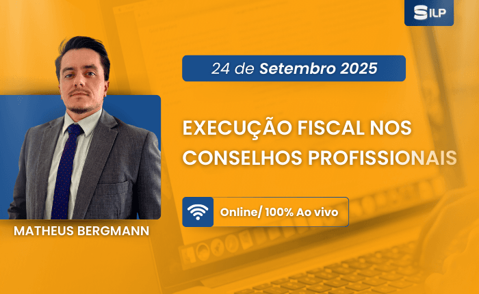 Execução Fiscal nos Conselhos Profissionais, no dia 24 de Setembro de 2025. Online/ Ao vivo, com carga horária de 04 horas.