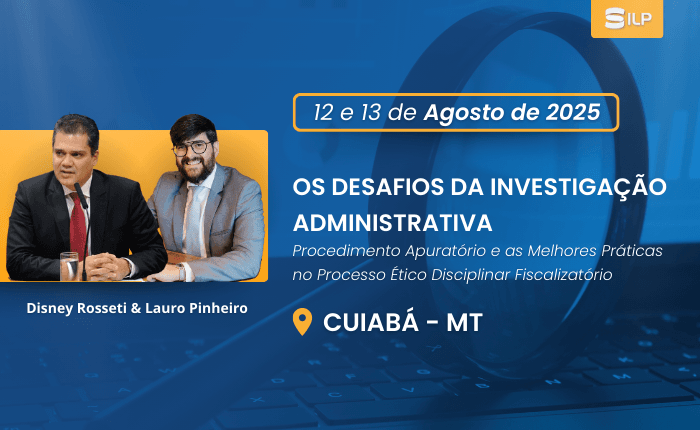 Os Desafios Da Investigação Administrativa – Procedimento Apuratório Eficaz E As Melhores Práticas No Processo Ético-Disciplinar E Fiscalizatório, nos dias 12 e 13 de Agosto de 2025. Presencial em Cuiabá – MT, com carga horária de 16 horas.
