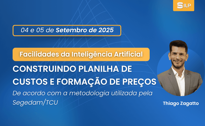 Planilha de Custos e Formação de Preços de acordo com a metodologia utilizada pela Segedam/TCU: Incluindo Facilidades da IA, nos dias 04 e 05 de Setembro de 2025. Presencial em Porto Velho – RO, com carga horária de 16 horas.